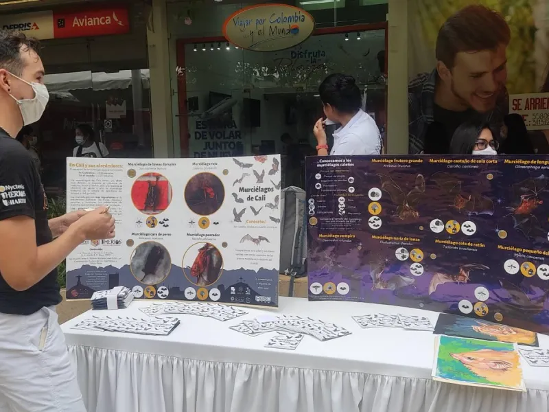 Estudiantes javerianos del Semillero de Ecología y Evolución de Murciélagos Nycteris, que dirige el profesor Danny Rojas, inauguraron el Mes de los Murciélagos, en una jornada vespertina que transcurrió durante la tarde del sábado 3 de octubre., y en la que también participaron estudiantes de los semilleros de Mastozoología de la Universidad del Valle (semillero «Therios») y de la Universidad ICESI (semillero «Hartii»). La actividad se realizó en Unicentro y estuvo apoyada también por la Fundación Calima y el Programa para la Conservación de los Murciélagos de Colombia, que hace parte de la Red Latinoamericana y del Caribe para la Conservación de los Murciélagos.