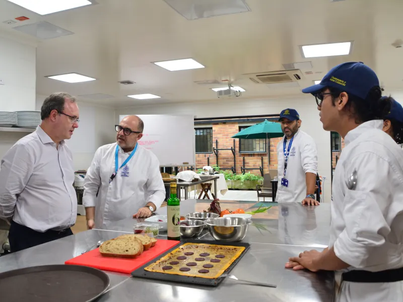 Asimismo, señaló que uno de los muchos programas en común que fue de mayor interés es el de gastronomía, ya que es bastante parecido al de Comillas. Esto, lo menciona como resultado de su paso por los laboratorios de gastronomía de la universidad, donde un grupo de estudiantes preparó una degustación de platillos elaborados con productos locales.